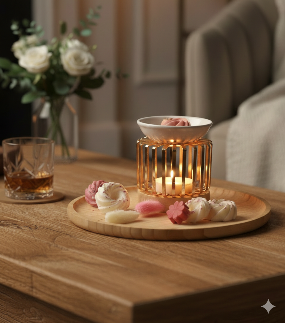 Associé à nos fondants parfumés, le brûle-parfum Trésor diffuse une chaleur douce qui libère progressivement des notes envoûtantes. Parfait pour créer une ambiance cocooning lors des soirées d’hiver ou une atmosphère rafraîchissante en été.