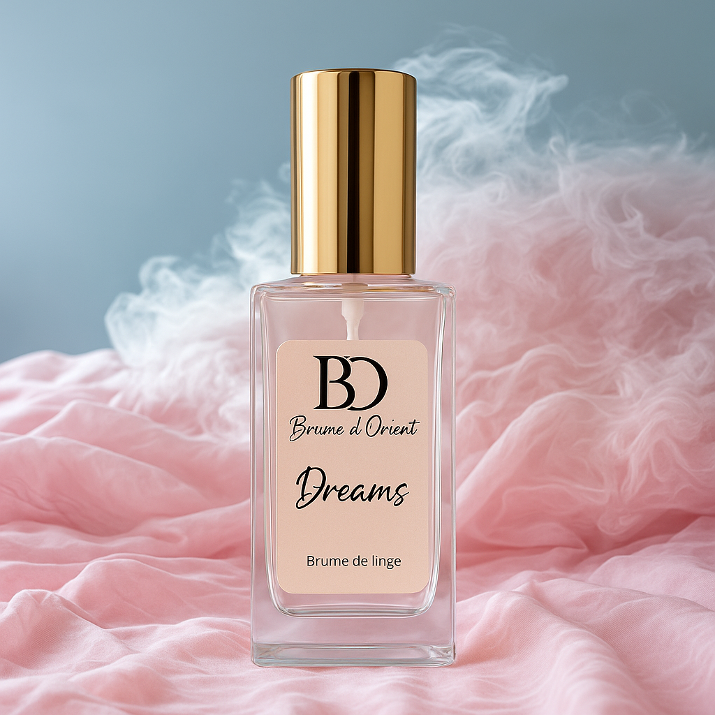 La brume de linge Dreams enveloppe vos tissus d’un voile délicat et parfumé qui crée une atmosphère fraîche et fruitée. Fabriquée à la main dans l’atelier de Brume d’Orient, elle est composée d’ingrédients naturels et sans alcool. Elle neutralise durablement les odeurs révélant un parfum subtil et délicat.