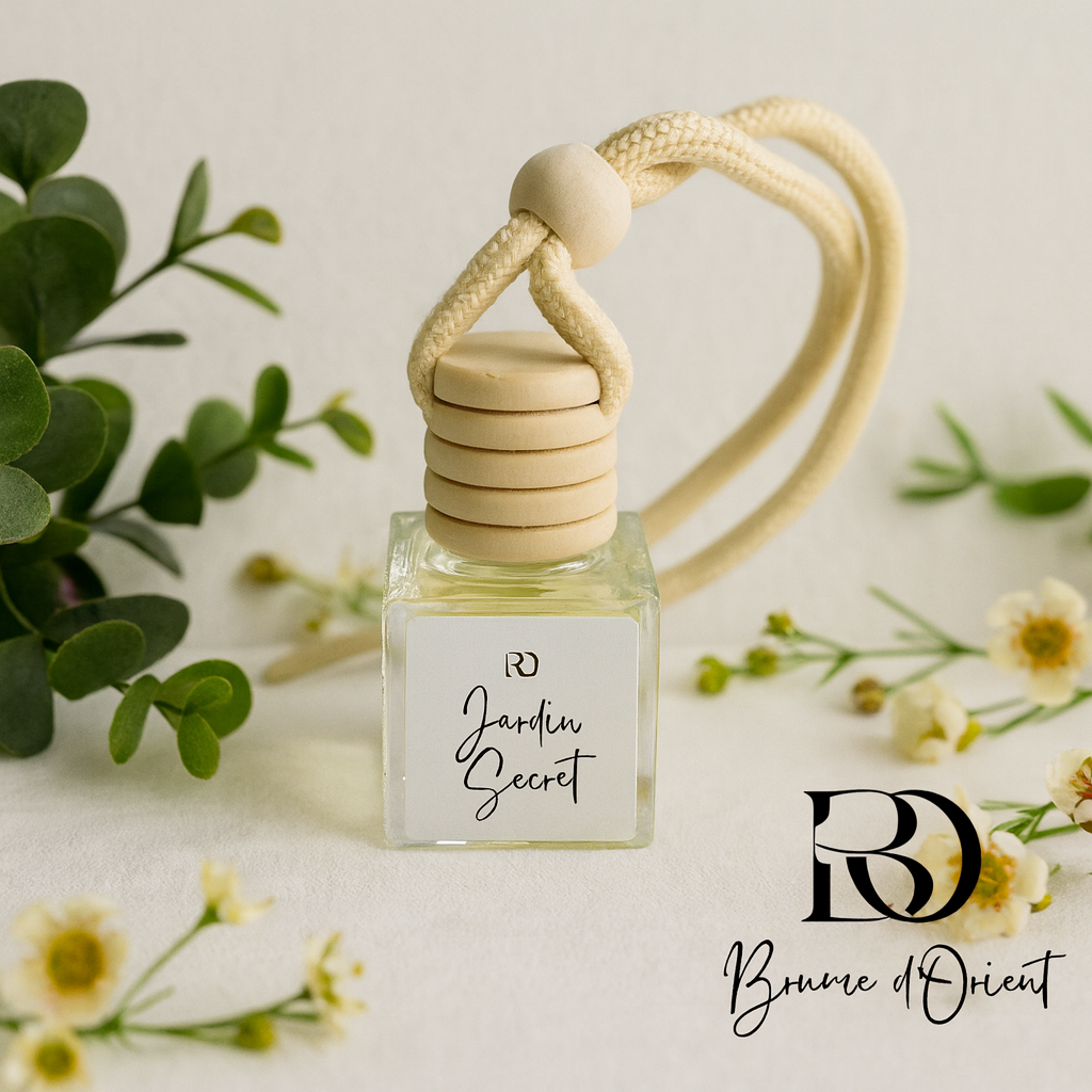 Notre diffuseur pour voiture Jardin secret allie esthétique et efficacité avec son flacon en verre et son bouchon en bois. Son format compact se glisse discrètement dans votre véhicule tout en diffusant subtilement sa fragrance florale orientale .